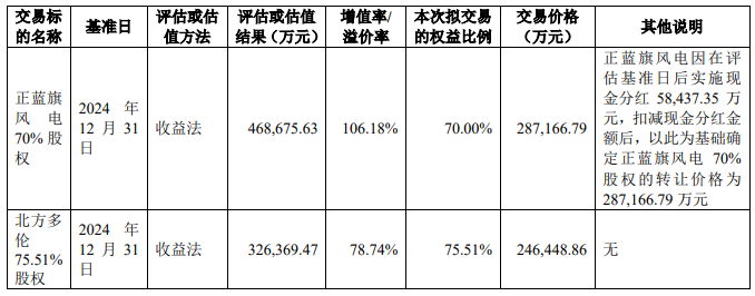 中国经济网北京12月12日电 上海证券交易所并购重组审核委员会2025年第二十二次审核会议昨日召开。经查,内蒙古蒙华能热电股份有限公司(“内蒙古华电”,600863.SH)发行股份购买资产。该交易须遵守重组条件和披露要求。重组委主要问答 1、请上市公司代表结合近年来上市公司加速新能源转型和投资新能源项目的背景、大股东承诺的内容及履行情况、标的公司的规划建设进程等,说明制定本次交易方案的理由,并向提供明确意见的独立财务顾问代表或法定代表人说明。名词2、上市公司代表将根据标的资产估值中使用的风电削减率、结算电量、结算电价、贴现率等指标的选取、预测期内相关指标的变化、参考日后的实际数据以及同行业的比较例,要求说明标的资产的估值是否审慎、合理。请独立财务顾问和评估师代表提供明确的意见。内蒙古华电公司昨天下午更新的《关于发行股份及支付现金购买资产及配套融资暨关联交易的报告(草案)(草案登记)》显示,内蒙古华电公司拟向北方联合电力有限公司(简称“北方公司”)发行股份并支付现金。根据中国华平企业报告(2025)第6615号,“B北方联合动力有限公司拟转让北方双伦新能源有限公司(以下简称“北方双伦”)股权。北京中企华评报(2025)第6615号,报送中国华农集团有限公司。 司以2024年12月31日为估值基准日对正蓝旗风力发电进行评估,并根据资产评估报告对北方都正蓝旗新能源有限公司股东持有的与北都正蓝旗新能源有限公司股份相关的全部股权价值进行评估。都正蓝旗新能源有限公司 北武陶润股东持有的全部股权价值采用d法和收益进行估值。正蓝旗风电股东权益总额为468,675.63万元,北达润股东权益总额为326,369.47万元。截至评估基准日,正蓝旗风电现金分红金额为 人民币元584,373,500。根据上市公司与北方公司签署的《发行股份及支付现金购买资产的协议》及其补充协议,北方多伦公司参考《评估报告》所述的评估结果,经双方协商,减去现金分红金额,确定正蓝旗风电70%股权的作价为287,166.79万元。 75.51%股权价格为246,448.86万元。交易总金额(不含支持融资金额)533,615.66万元。经双方协商,本次发行价格为每股3.46元,不低于股权登记日前60个工作日股票交易均价的80%。计算通过发行股票取得的标的资产的交易价格和当前发行价格,即本次发行的股票数量本次发行股份购买资产完成后,上市公司将向其业务合作伙伴发行771,864,500股,相当于上市公司总股本约10.58%。详细信息如下。至于配套资金收购,本次拟募集配套资金总额不超过26.5亿元,不超过本次交易发行股份资产购买交易价格的100%。发行股份及支付现金购买资产后的股份数量不得超过公司总股本的30%。本次交易筹集的配套资金将用于支付与本次交易相关的现金对价、经纪费用及税费。本次募集的支持资金将向符合中国证监会规定条件的特定投资者共计最多35名。的参考日期是起诉股份募集支持资金将在发行期首日进行。发行价格不得低于价格登记日前20个工作日公司股票交易均价的80%,且不得低于最近一个会计年度经审计的归属于上市公司母公司股东的每股净资产。虽然本次交易不构成重大资产重组或重组上市,但属于关联交易。本次交易的对方北方公司是一家上市公司的大股东。根据《上市规则》相关规定,上述业务伙伴为上市公司关联方,本次交易构成关联交易。本次交易前,上市公司控股股东为北方公司,实际控制人为中国华能。完成此操作后本次交易后,上市公司第一大股东仍为北方公司,实际控制人仍为中国华能。本次交易并不意味着上市公司控制权发生变化。内蒙古华电聘请国泰海通证券有限公司作为本次交易的独立财务顾问。项目发起人为王亮、张伟,项目共同发起人为张晨,项目组成员为卢东伟、范家伟。